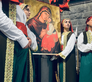 Ad ottobre, durante i festeggiamenti patronali, Biancavilla rivive le sue origini con la suggestiva rievocazione storica Arbëreshë, come gli albanesi sono arrivati proprio in questi territori e insieme all’icona della Madonna dell’Elemosina hanno deciso di stanziarsi. Oramai da anni la rievocazione è consolidata come un avvenimento molto atteso dalla comunità biancavillese. Previa un’iniziale ricerca approfondita, di quella che è la storia reale dietro all’avvenimento dell’icona e dell’albero di fico, si è riusciti ad ottenere una ricostruzione accurata della storia della fondazione di Biancavilla. Un lungo corteo di persone in abiti tradizionali sfila per le vie del paese, rievocando l’arrivo della comunità albanese che, guidata da Cesare De Masi, fondò la città nel 1488. Un passaggio ricco di colori, simboli e musicalità attraenti. Perché il corteo racconta la storia di un popolo in fuga dall’invasione turca e approdato ai piedi dell’Etna, portando con sé cultura, folclore e religiosità. L’evento si conclude nella maestosa Basilica di Maria SS. dell’Elemosina, davanti alla quale si svolgono anche vari spettacoli folcloristici a conclusione della rievocazione. È in occasioni come questa che si celebra l’identità di una comunità che ha saputo fondere passato e presente in un’unica grande tradizione.